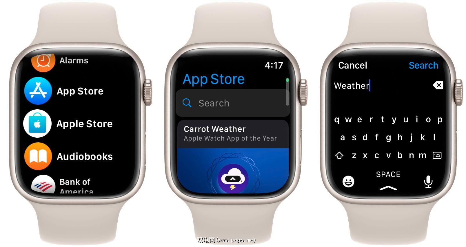 您还可以直接从 Apple Watch 下载应用程序。按数字表冠,然后选择App Store。