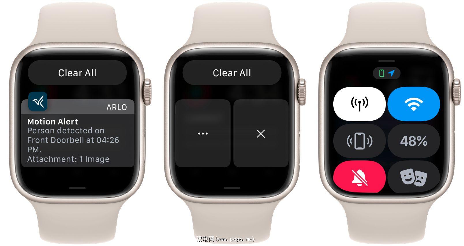 为了更好地与 Apple Watch 互动,您可以从表盘向下滑动以查看来自 iPhone 的任何通知。选择一项以查看更多信息。要关闭一个单独的通知,请向左滑动并选择X。