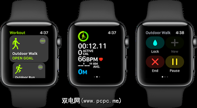 根据您的Apple Watch和watchOS版本,您将看到诸如步行,跑步,游泳,高强度锻炼,骑自行车,