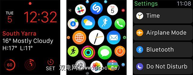 WatchOS就像iOS中那样,它会在跳板上显示所有“应用"。您可以使用数字表把进行放大和缩小,并用手指选择一个应用程序。就像iOS一样,所有内容都是一个单独的“应用程序",尽管可能只是一个拉伸,因为其中许多只是iOS主体的精简版。