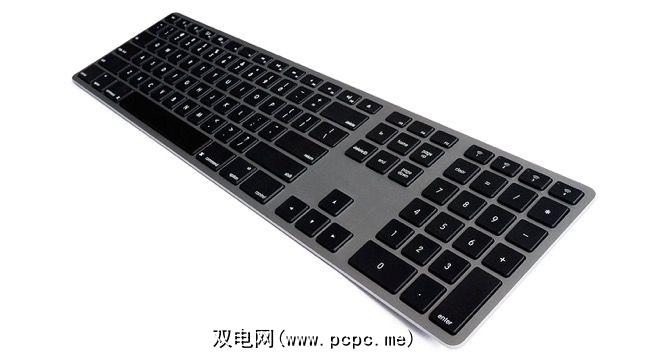 Matias是Mac上最好的键盘之一,无线铝制键盘也不例外。它带有深空灰色和完整的数字键盘。您会在顶部找到熟悉的macOS功能和播放键。