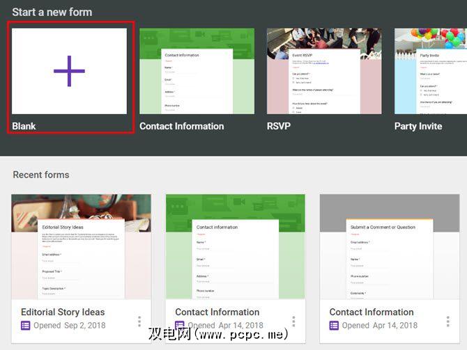 访问Google表单,然后通过单击“ +"图标创建空白表单来启动新表单。