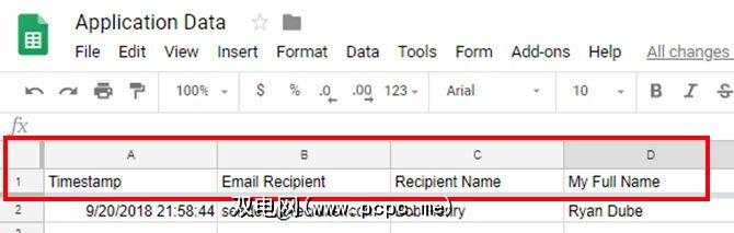 例如,列A上方是“时间戳记" ",列B为“电子邮件收件人",依此类推。以后您将需要此信息。