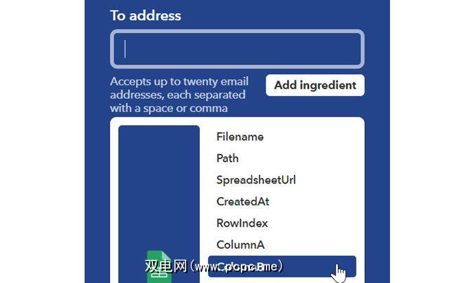 首先,点击地址字段下方的添加成分。然后从电子表格中选择与收件人电子邮件相关的列。