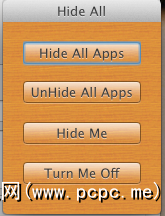 如果您需要隐藏和取消隐藏桌面上的应用程序,“全部隐藏"包含一个小窗口,可以最小化所有打开的应用程序,