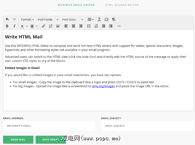 HTML Mail应用程序主要适用于Gmail,一旦您授予其对收件箱的访问权限,便可以直接发送电子邮件。但是您仍然可以将其用于非Gmail服务。只需撰写您的消息,然后将HTML代码复制粘贴到服务的HTML视图即可。