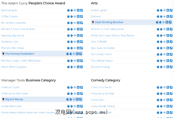该列表仅提及提名人的姓名以及指向播客首页的链接。不幸的是,没有一个清晰的描述可供您事先阅读,但该类别使您可以清楚地了解它。