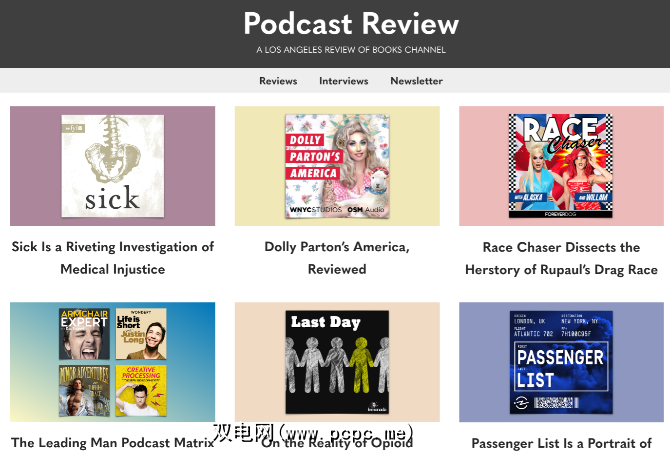 洛杉矶书评开始了一个独家网站,提供播客评论和与主持人的访谈。与社交推荐引擎不同的是,这些引擎要深入得多,大概是在听完完整系列或多个剧集之后才能完成的。