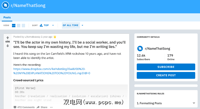 为歌曲命名(Reddit):Reddit的歌曲识别社区