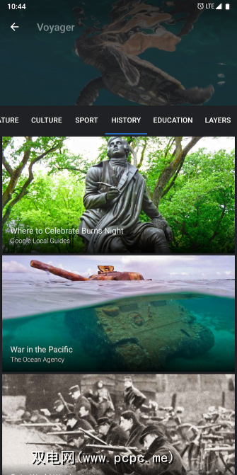 这些虚拟旅行团可供选择在应用程序左侧导航抽屉中的旅行者标签下。在其中,转到历史记录部分。
