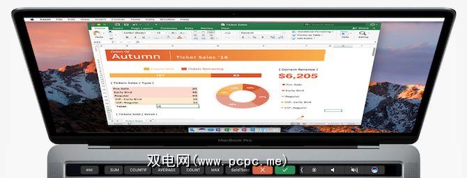 带有Excel的触摸栏也可以提供对边框,单元格颜色和推荐图表的快速访问,使您可以更好地组织和可视化数据。