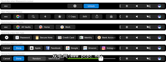 您还可以使用Touch Bar切换密码库或类别,创建新条目,锁定