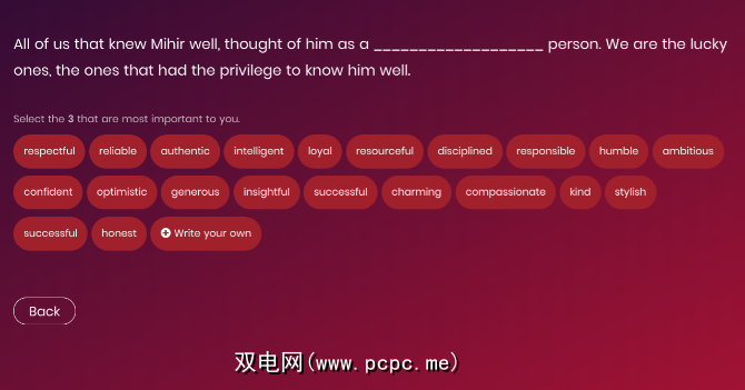 It starts by making you write your obituary in the future. Imagine what your best friend says about you when you die, as the app takes you through each part of the eulogy. You have to choose qualities that you wish your friend says about you in the future. That’s how you figure out who you want to be by the end of your life.
