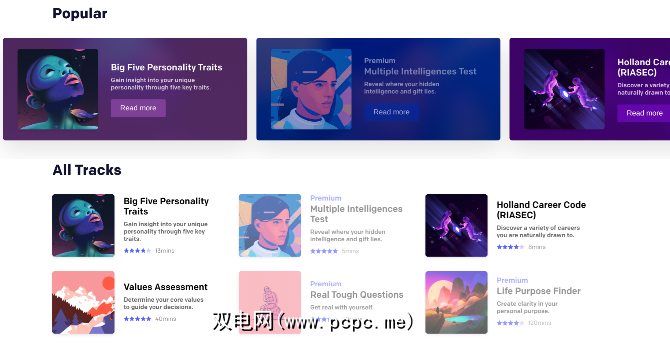 免费帐户为您提供了五种途径,包括人格特质,您的价值观和RAISEC荷兰职业守则,这是最好的免费测验之一寻找完美的职业或职业。在开始任何测验之前,有一个简短的说明,告诉您将从中获得什么以及可能需要花费多长时间。