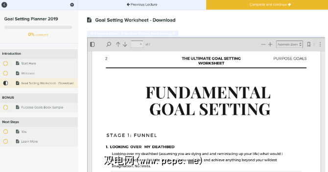 如果您希望使用笔和纸而不是键盘进行离线工作,那么“目标目标"课程非常适合您。在快速了解目标是什么以及如何实现目标之后,您可以将免费的目标设定工作表下载为PDF,并将其打印出来。