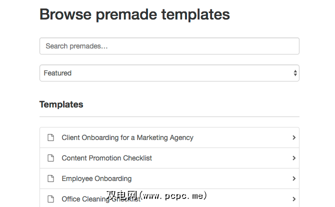 Process Street(Web)相当新,但是在办公室工作的人都会喜欢它。这个程序是为公司准备的,因此清单是相应的。例如,有一个“每日商店开张检查表"或“一个市场代理的客户入职"列表。它涵盖了大多数顶级行业,每个行业都有详细的清单。免费版本一次提供五个清单,但您可以付费使用无限的清单。