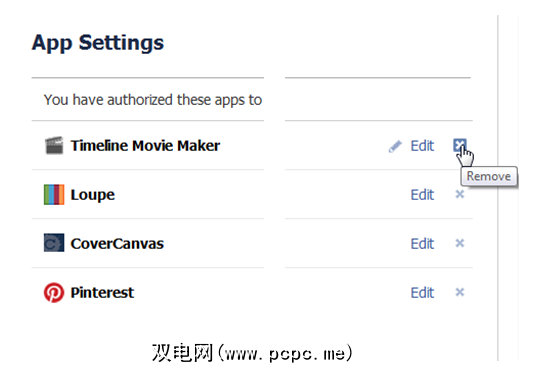 以Facebook为例,这是一个经常诱使我们添加越来越多应用的网站。当您单击MyPermissions上的Facebook图标时,您将直接进入“ Facebook应用设置"页面。