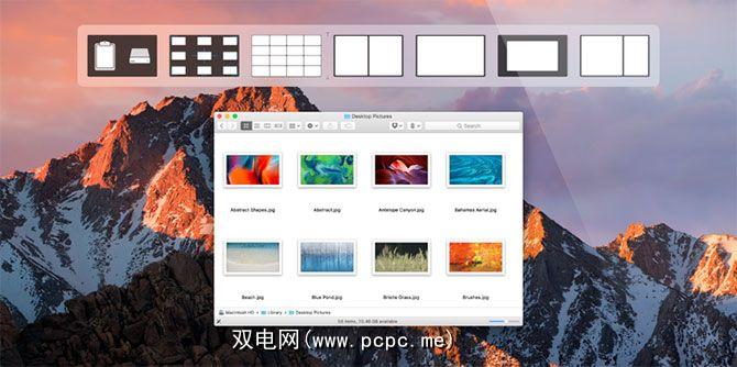 Mosaic位于菜单栏中,在开始移动窗口之前,实际上什么也没做。将您要拖动的窗口移到屏幕顶部附近,您会看到几个图标出现。将鼠标指针拖到它们上方,您可以通过几种不同的方式放置窗口。