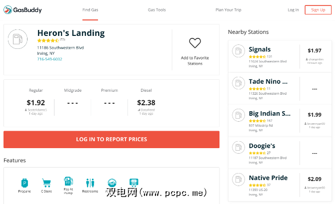 默认情况下,它会根据常规汽油的价格列出加油站,但您可以将其更改为中档,高级,柴油或无铅。您还可以按您感兴趣的设施过滤站,例如洗手间,按需付费,气泵,ATM机和便利店。您会看到其他人对这个测站仪的评价。