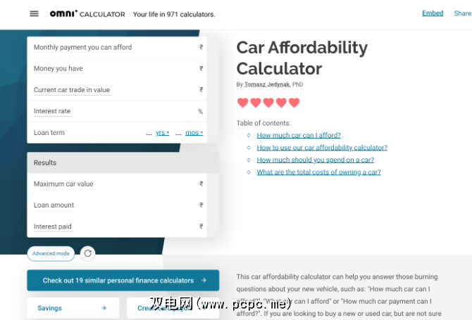 3。汽车计算器(Web):查找负担能力,贷款,折旧