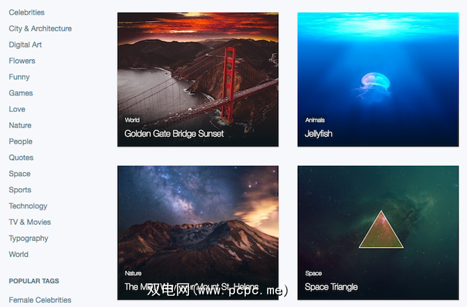 很显然,您可以搜索以快速找到所需的内容。但是您可能还是要花一点时间浏览。高清壁纸由于其设计而易于浏览,因此您可以查看类别(例如电视和电影,游戏,自然,空间)或热门标签(黑白,蝙蝠侠,插图,紫色)。