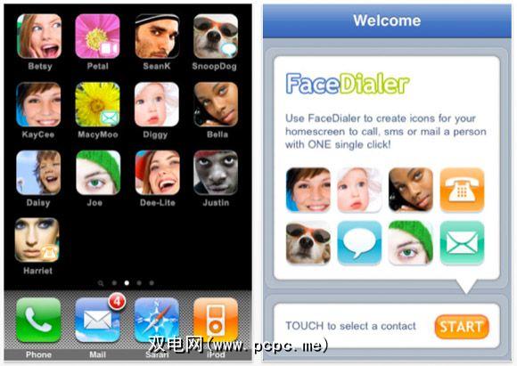 我从不喜欢“收藏夹"列表在iPhone的“电话"应用中。它需要2-3次点击才能访问,并且如果列表中的人数超过几个,则可能难以阅读和导航,尤其是在开车时。因此,这是诸如Face Dialer(.99 cents)之类的应用程序派上用场的地方。它使您可以创建您经常打电话,发短信,发送电子邮件的人的照片图标,并单击即可启动联系人。