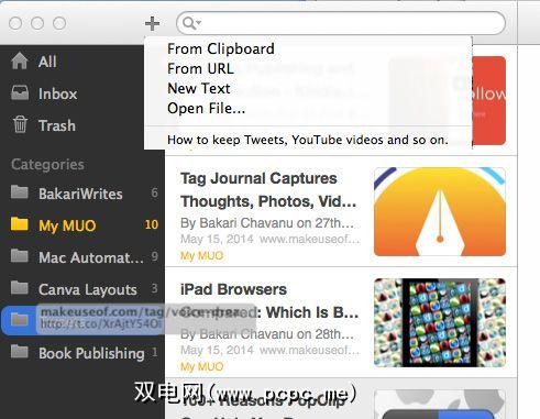 在Mac版本中,可以将内容拖放到应用程序中,也可以使用+按钮导入数据。如果您已将URL复制到系统剪贴板,则Keep Everything可以从中获取并导入文章。您还可以从已存档的页面内部拖动并保存URL链接。