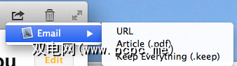 选定的网页和其他内容可以通过电子邮件共享,格式化并转换为PDF或“保留一切"文件。