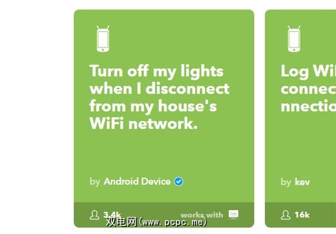 例如,通过在 Alvaro Luis Bustamante 上修改了本教程,将IFTTT与thinger.io结合使用,可以将基于位置的控件添加到照明中。不用Twitter做 If 操作,而是使用Android频道来检测手机何时连接到家庭Wi-Fi网络。