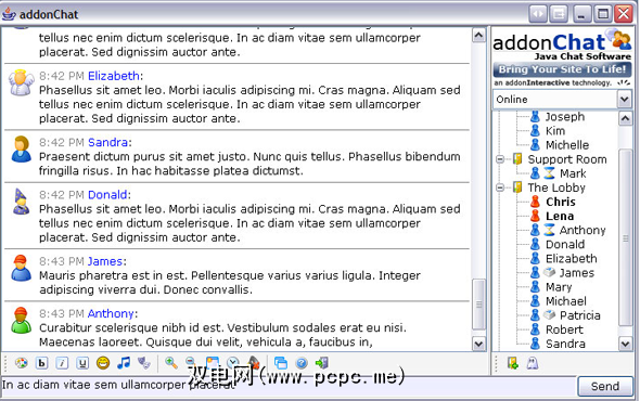 因此,社交网络可能不是您的事情,而您可能想要的东西比phpFreeChat所提供的东西更强大。好吧,总有一个基于Java的聊天小程序addonChat,它融合了许多功能,使我们回到了在线聊天室的黄金时代。