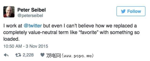 发生了什么: Twitter更新了其用户界面,因此您现在无需通过按星形图标来“收藏"他人的推文,而是通过按心形图标来“喜欢"它。