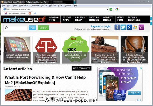 您可能听说过一个名为SlimBrowser的浏览器。 SlimBoat是同一个小组的成员,我认为两者之间更好。如果主流浏览器过于ated肿,而Midori对您来说过于肤浅,那么SlimBoat就适合您,因为它是功能和膨胀之间的完美折衷。