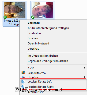 只需转到要旋转的一张或多张照片,用鼠标突出显示它们,右键单击,现在您将看到两个右键菜单中的新选项: