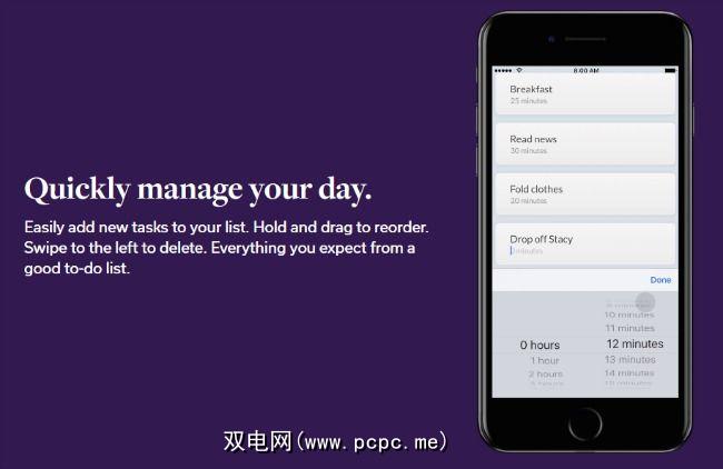 该应用程序具有待办事项列表界面,可让您轻松添加新任务,按住并拖动以重新排序,或向左滑动即可删除。当您点击一项任务时,计时器开始计时,随着时间的流逝,屏幕上的颜色从绿色变为黄色到红色。