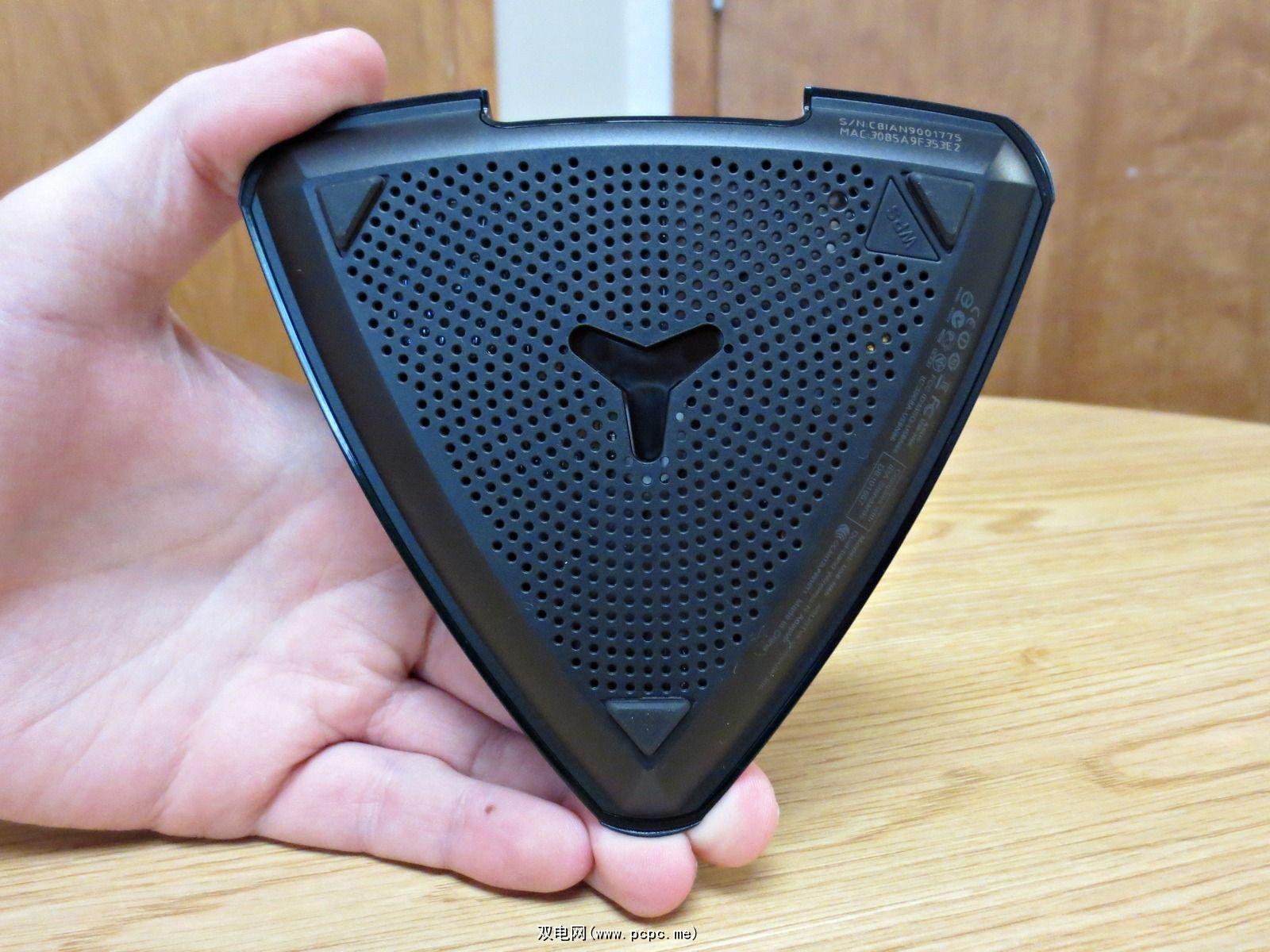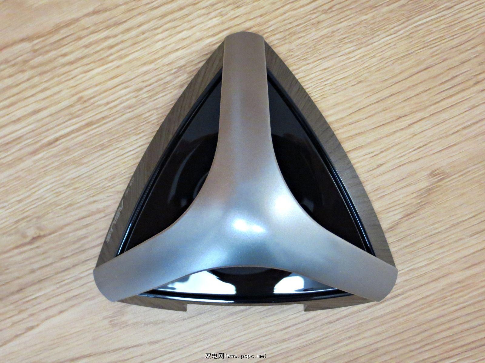 无线适配器的设计非常有趣,它散发出希望它可以提供一些不错的速度优势。它的形状像金字塔,朝顶部顶点的三个边中的每一个都包含一个天线。在这些边缘的下面,您会发现蓝色的LED灯在插入设备后会发出蓝色的光。