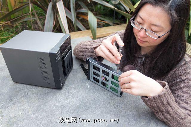 在驱动器托架的底部按一下即可轻松打开它们;在后部是一个大型变速风扇,大多数时候几乎听不到声音。如果您觉得太容易了,请在安装后使用一字螺丝刀转动每个托架的锁,以防在使用中意外打开托架。以后再拧4颗螺丝,然后将托架重新插入。
