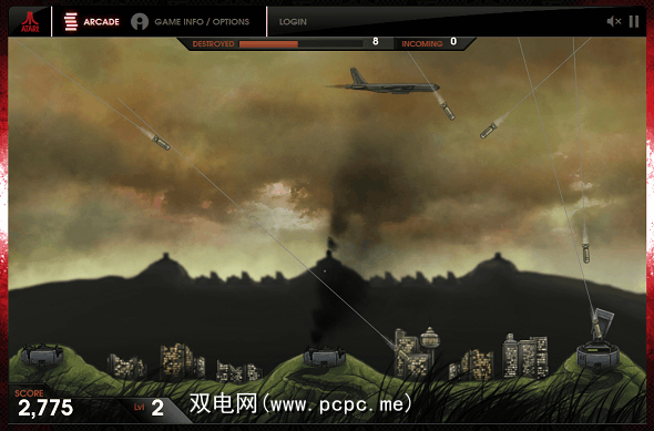 导弹司令部听起来比实际要有趣。您负责防卫这座城市,以防御敌人的残酷袭击。因此,随着导弹从各个角度降落在您的身上,您将用火与火搏击,并在威胁击中之前将威胁击落。该游戏是用鼠标而不是键盘来玩的,有点碰碰运气。从字面上看。