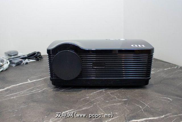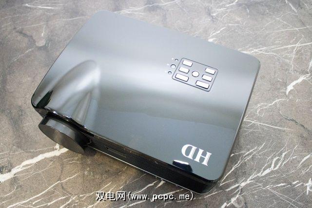投影机本身采用通常的发泡塑料泡沫精心包装。否则会发亮的黑色塑料设备上唯一的商标形式是顶部的字母HD;似乎几乎不值得进行印刷。似乎在前面可以粘贴徽标或徽章的空间,但我们的模型没有提供。