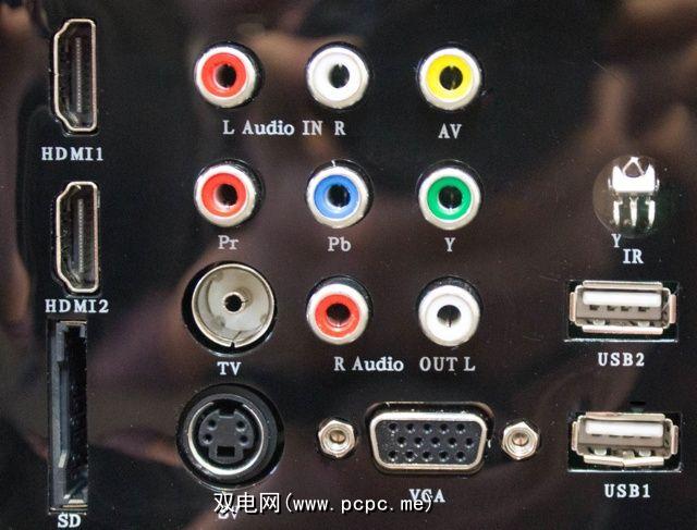 在背面不乏插座和端口,以及所有标准组件,S-VIDEO,VGA,以及双HDMI输入,甚至还有模拟电视天线插座。我的房子上没有天线可以测试这一点,但是无论如何我都不希望它能与现代数字服务一起使用。