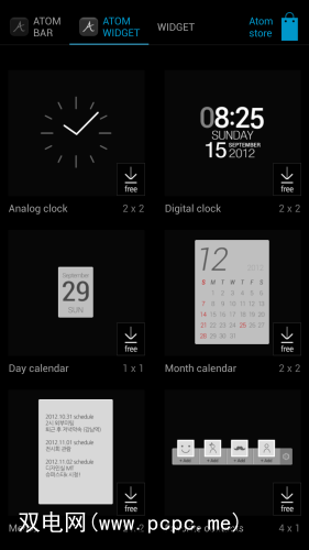 上面的视频承诺了很棒的小部件和主题。 Atom Launcher本身不具备以下功能:您将必须安装两个配套应用程序(一个用于主题,另一个用于小部件)。在我看来,这实际上是一个优势,因为它可使核心启动器保持纤薄苗条。以下是大多数的Atom Launcher自定义窗口小部件: