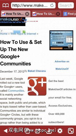 但这是Atomic Web的高级功能,将使iOS高级用户垂涎三尺。首先,与Safari不同,您无需点击按钮即可查看所有打开的标签页(请参见上面的屏幕截图。)即使在一次仅显示两个或三个标签页的iPhone上,您也可以轻松滑动您的手指可以跨它们访问其他打开的选项卡。