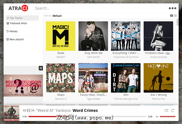打开Atraci,您将看到当前流行歌曲的播放列表。