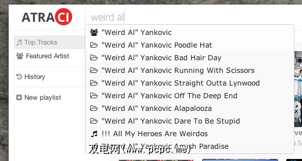 在Spotify或Rdio上找不到特定的歌曲?尝试Atraci,这是一种由YouTube驱动的Windows,Mac和Linux音乐播放器。有了它,您可以播放超过6000万首歌曲-Spotify提供“超过2000万首"歌曲。没有广告,也无需注册帐户。