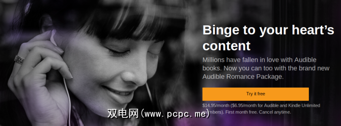 “ Audible Romance"是单独提供的软件包,也可以是现有Audible订户的附加组件。正如您可能已经猜到的,它完全致力于浪漫小说。包括成千上万本浪漫的有声读物,从畅销书到有声读物。