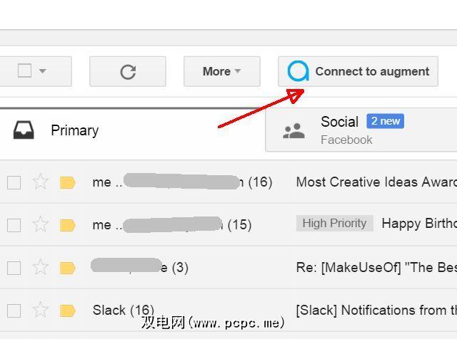 添加服务并逐一提供所需的权限。完成后,您会看到这些服务出现在Gmail收件箱的Augment下拉列表中,并标有“ Apps Augmented"的数量。