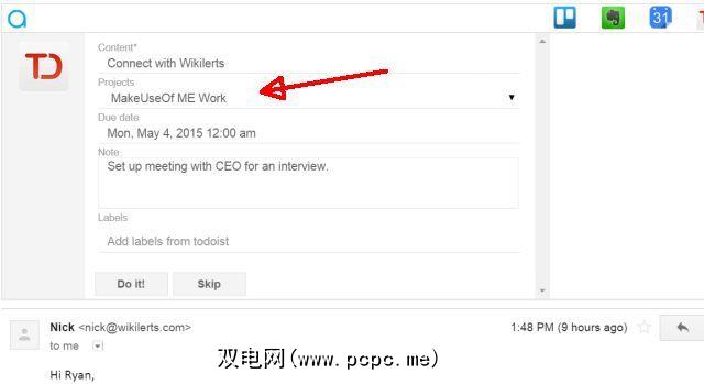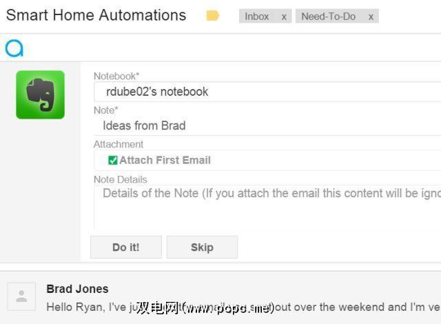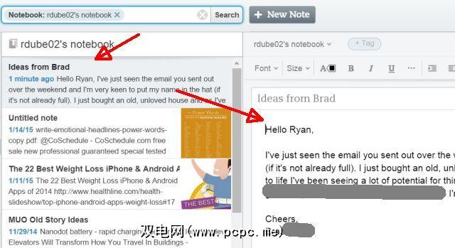 最棒的是,您甚至可以将电子邮件本身附加到Evernote笔记上。这将整个电子邮件粘贴到Evernote,您指定的Notebook和Note标题中。