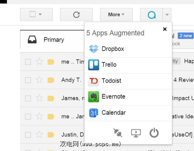 所有这些功能都增强了收件箱的功能,而Augment for Chrome插件实际上将所有您喜欢的生产力工具和服务直接集成到了Gmail收件箱中。您不会相信这会给您带来多么惊人的生产力。
