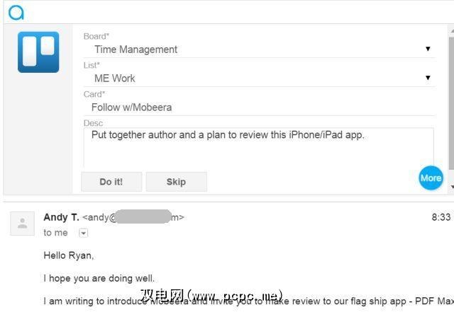 Trello包含其自己的注释功能,但是您总会有一些不使用Trello的人,他们会通过电子邮件向您发送项目更新。现在,将Trello“增强"到您的Gmail中后,使用这些电子邮件详细信息更新项目就无需打开新标签并登录Trello。这需要几秒钟。