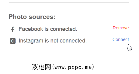 通过您的个人资料,您还可以链接其他帐户没用来注册。您可以在“ 照片来源"下找到此选项。如果需要,您还可以从这里断开任何帐户。