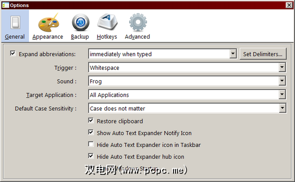 自动文本扩展器的选项非常广泛。您可以将自动文本扩展器设置为仅与某些应用程序一起使用,这在某些情况下非常有用。您还可以将缩写设置为区分大小写。